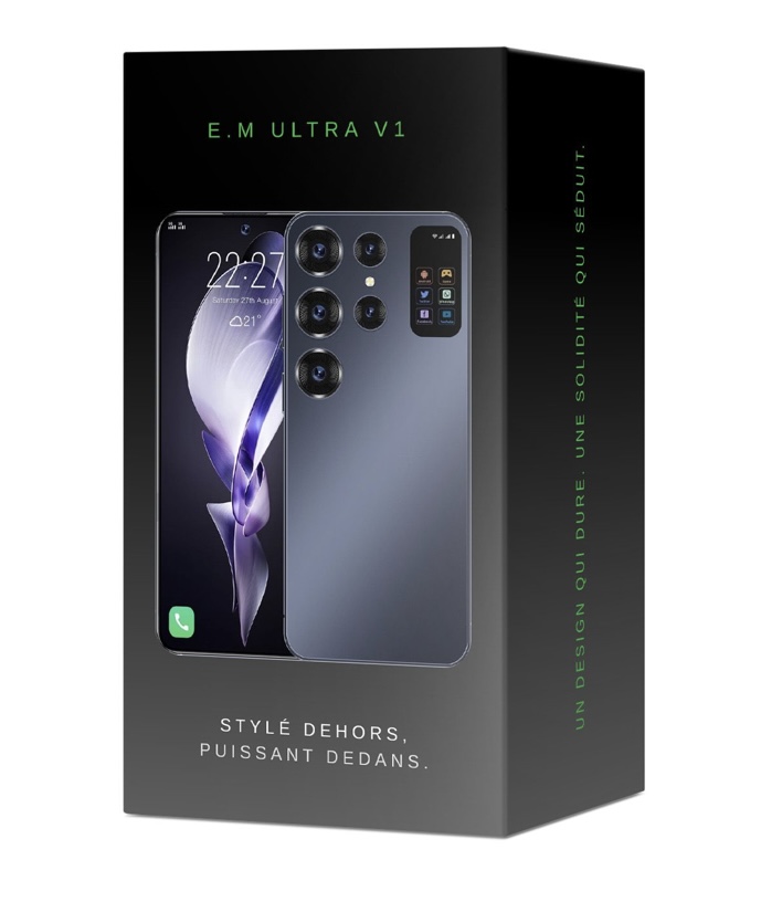Avec son écran large de 6,75 pouces, le E.M Ultra V1 se distingue par ses lignes épurées et son design élégant. Léger, moderne et agréable en main, il attire les regards tout en restant robuste.